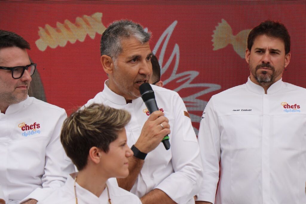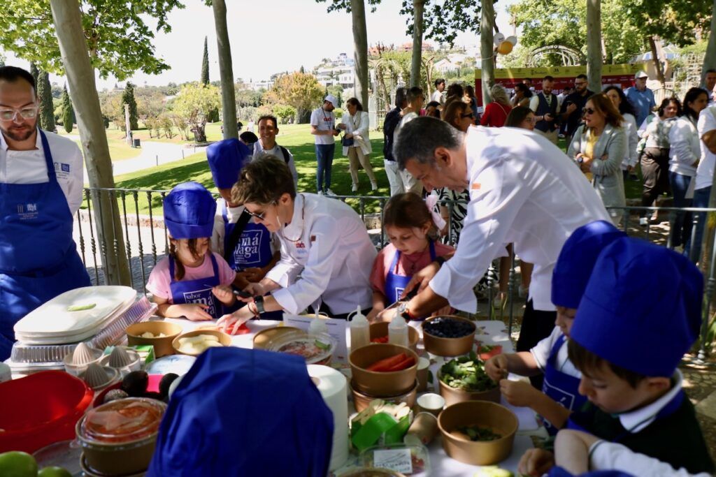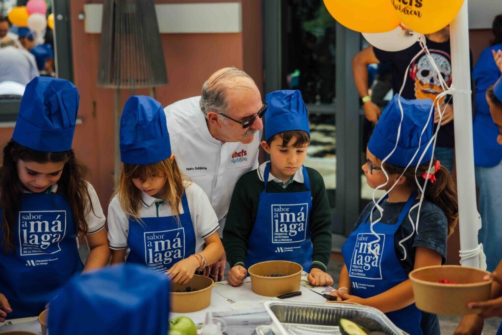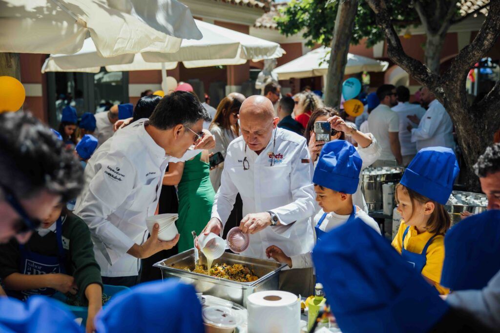 150 niños de colegios de Benahavís y de DiabetesCERO, junto a los chefs, los profesores de Le Cordon Bleu Madrid, los alumnos de la Escuela de Hostelería de Benahavís, Mariela Pérez, de Tu Chef Talleres; y los equipos de Anantara Villa Padierna y de ChefsForChildren comenzaban a cocinar.