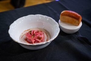 The chefs from the Canary Islands presented a Marinated Balfegó Tuna with boiled mojo.Using the tuna loin, the chef duo created an intriguing dish featuring a legendary element of Canarian cuisine: mojo.